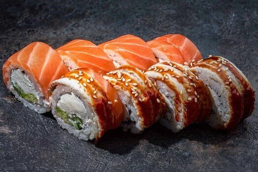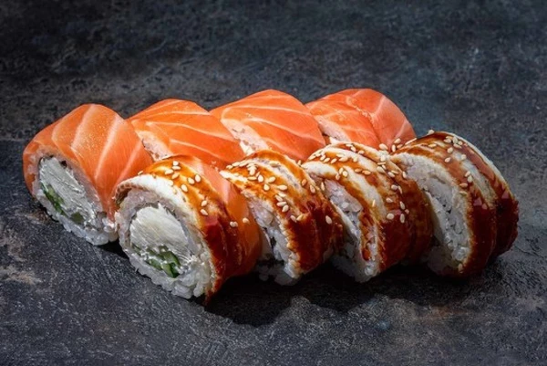 ЗАПЕЧЕННЫЙ РОЛЛ С ЛОСОСЕМ ТЕРИЯКИ